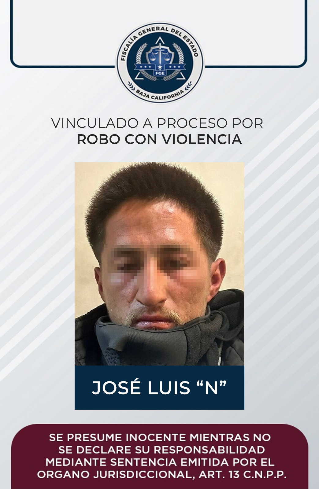 TIJUANA, B.C. La Fiscalía Regional de Tijuana, a través de las pruebas aportadas por el agente del Ministerio Público ante un Juez de Control, logró que se iniciara proceso penal en contra de José Luis “N”, probable responsable del delito de robo con violencia.