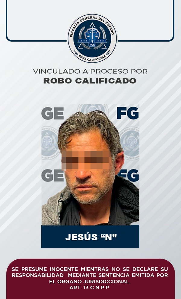TIJUANA, B.C. A través de labor de investigación desarrollada por la Fiscalía Regional de Tijuana, se obtuvo una vinculación a proceso en contra de Jesús “N”, quien presuntamente cometió el ilícito de robo calificado a establecimiento comercial abierto al público.