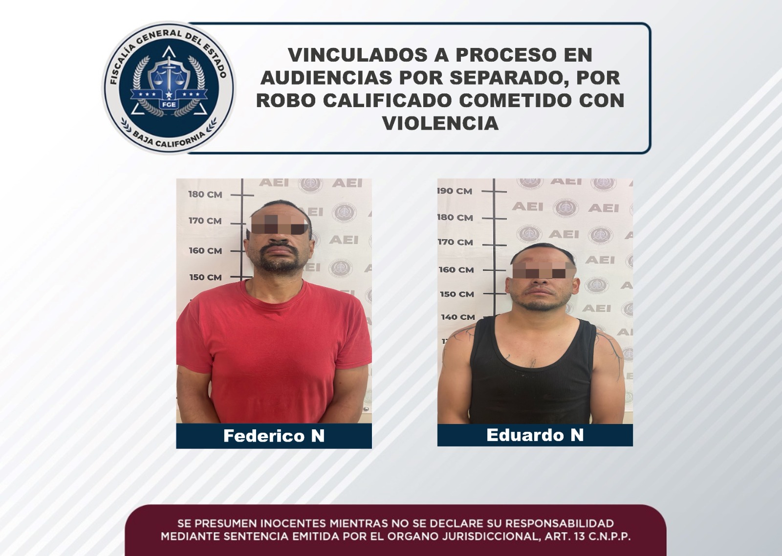 MEXICALI, B.C. Mediante el trabajo desempeñado con la integración de la carpeta de investigación, por la Unidad con Detenidos Oriente, de la Fiscalía Regional de Mexicali, se obtuvo la vinculación a proceso en contra de dos sujetos, por el delito de robo calificado cometido por dos personas con violencia.