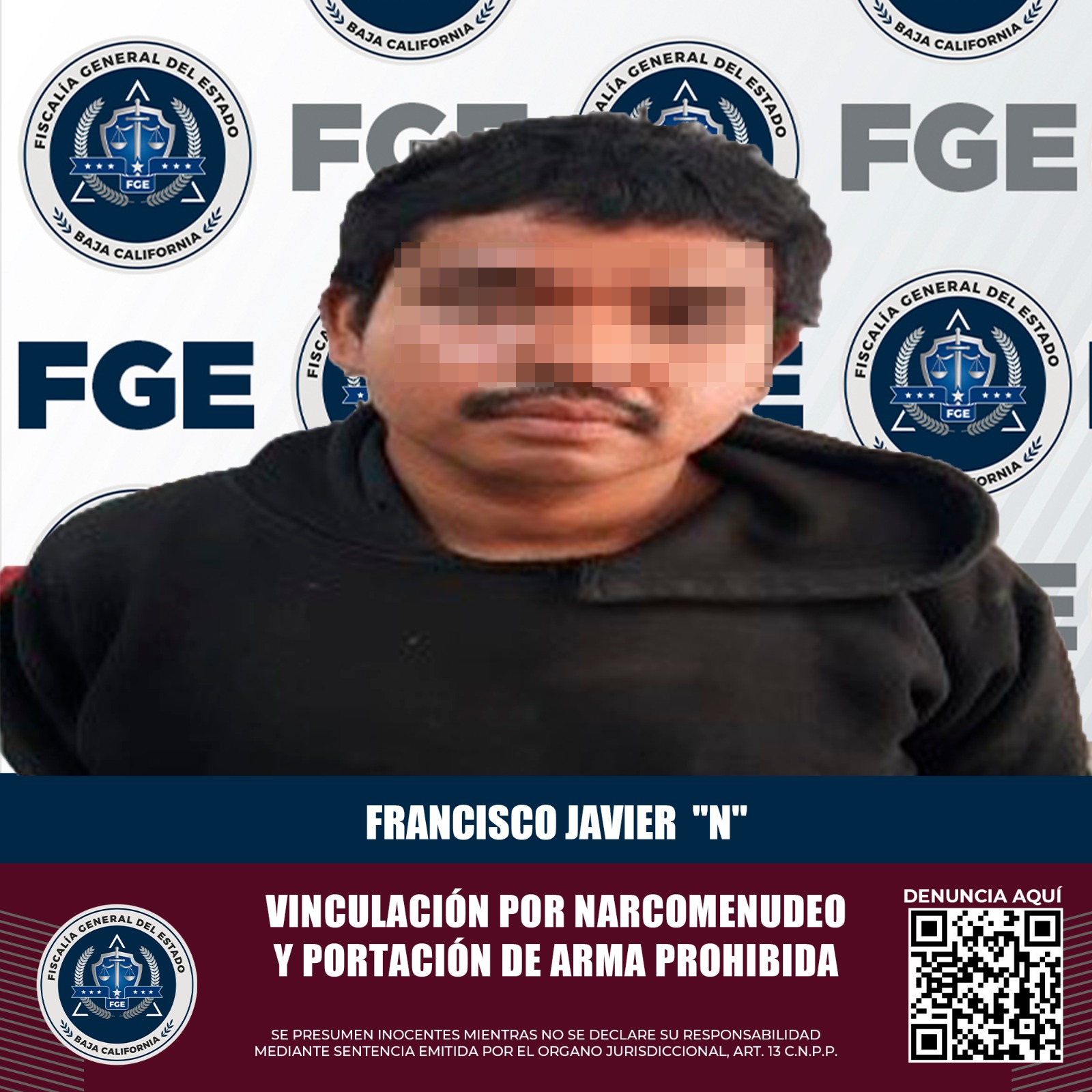 TECATE, B.C. Como resultado de acciones de investigación y datos de prueba recabados por la Fiscalía Regional de Tecate, se obtuvo la vinculación a proceso de Francisco Javier “N”, quien es probable responsable de los delitos de narcomenudeo y portación de arma prohibida.
