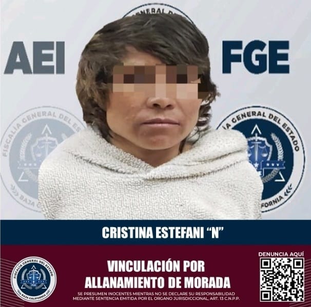 SAN QUINTÍN, B.C. La Fiscalía Regional de San Quintín, obtuvo auto de vinculación a proceso en contra de Cristina Estefani “N” por su presunta responsabilidad en el delito de allanamiento de morada, cometido en la delegación de Vicente Guerrero.