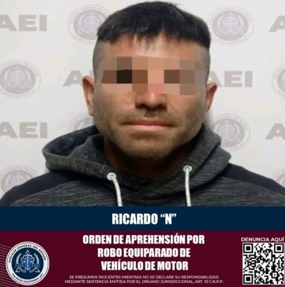 ENSENADA, B.C. Elementos pertenecientes al Grupo Especializado en Aprehensiones de la Fiscalía General del Estado (FGE), cumplimentaron una orden de captura por el delito de robo equiparado de vehículo de motor, en su modalidad de desmantelamiento.