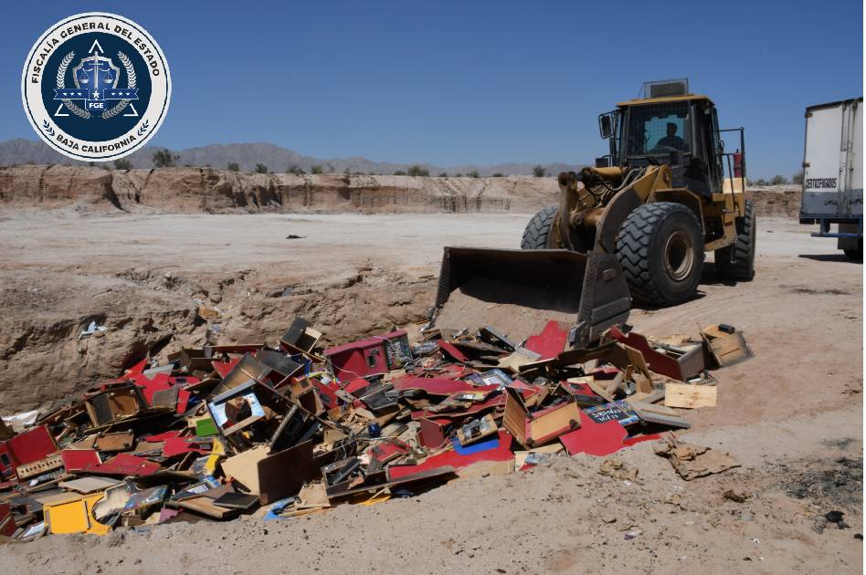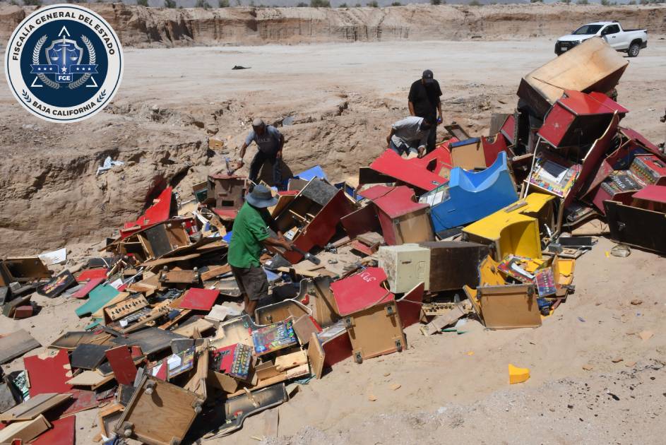 Las maquinas fueron entregadas a la Dirección de Bienes Asegurados y Abandonados, encargada de trasladarlas al relleno sanitario ubicado en el kilometro 16.3 carretera (5) Mexicali-San Felipe, en el ejido Benito Juárez.