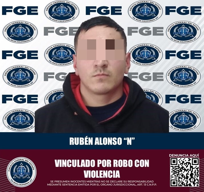 ENSENADA, B.C. La Fiscalía Regional de Ensenada, a través del agente del Ministerio Público, presentó cargos en contra de Rubén Alonso “N”, presuntamente relacionado en el robo con violencia a una tienda Oxxo situada en la colonia Arcoíris.