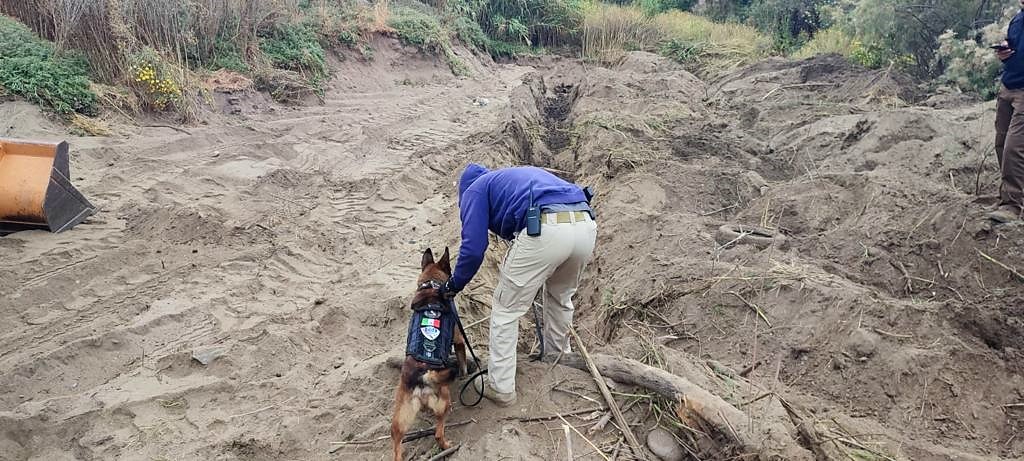Por lo difícil del acceso al sitio de búsqueda, fue necesario ejecutar algunas maniobras para llegar al punto de inspección, y después, realizar varias zanjas, mismas que fueron inspeccionadas por el agente canino, sin encontrar indicio alguno.