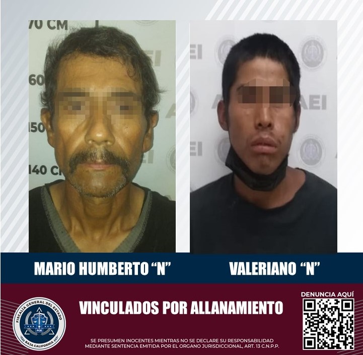 MEXICALI, B.C. Por su presunta participación en el delito de allanamiento de morada, dos hombres fueron vinculados a proceso, con base a los elementos de prueba presentados por la Fiscalía Regional de Mexicali, a través de la Unidad de investigación con Detenidos Oriente y la Unidad Foránea de Guadalupe Victoria.