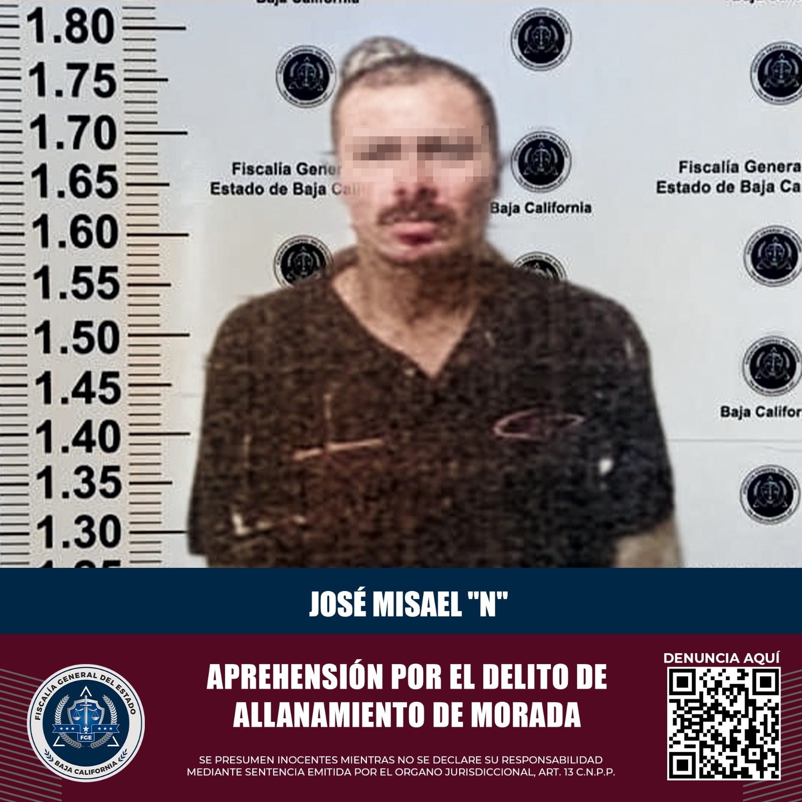 PLAYAS DE ROSARITO, B.C. El Grupo Especializado en Aprehensiones de la Fiscalía General del Estado logró cumplimentar un mandamiento judicial en la persona de José Misael “N”, quien es investigado por el delito de allanamiento de morada.
