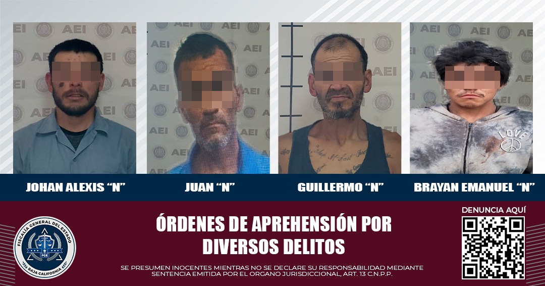 TECATE, B.C. Elementos de la Agencia Estatal de Investigación (AEI), en acciones distintas, cumplimentaron cuatro órdenes de aprehensión en contra del mismo número de personas, las cuales eran requeridas por jueces de control presuntamente participar en hechos delictivos.