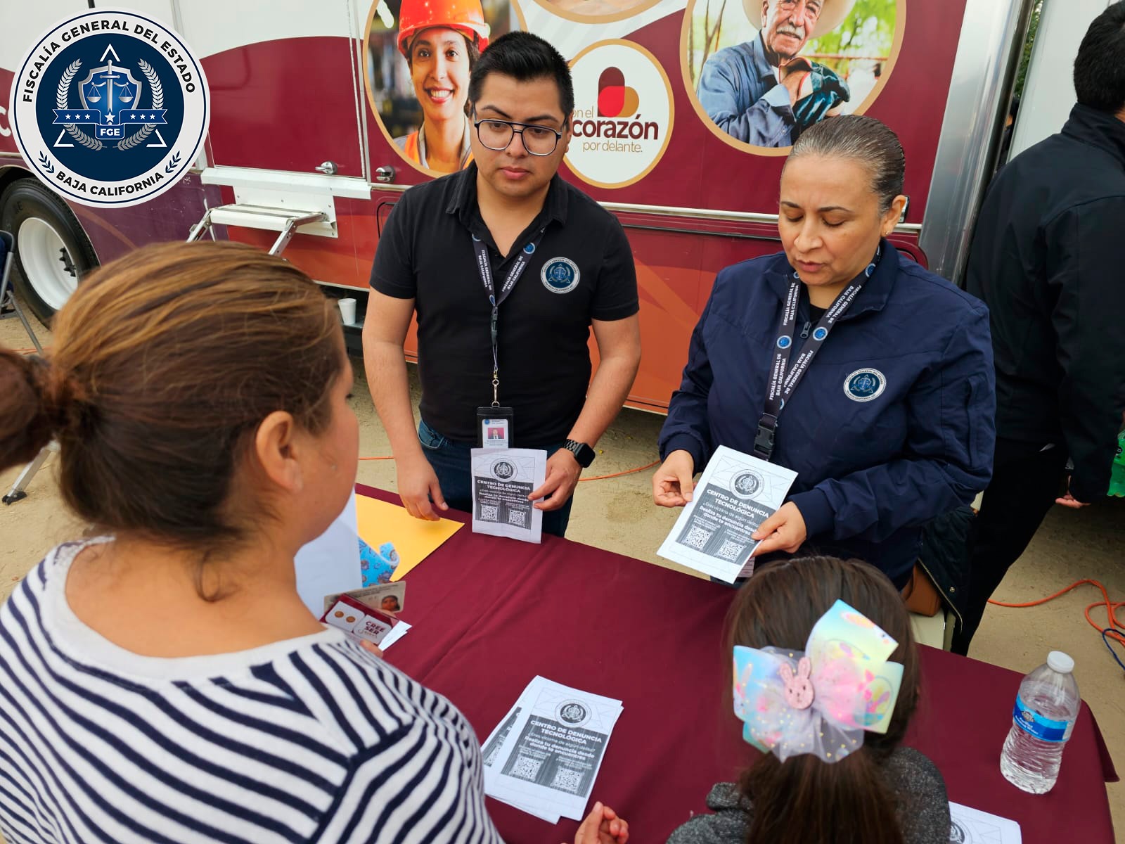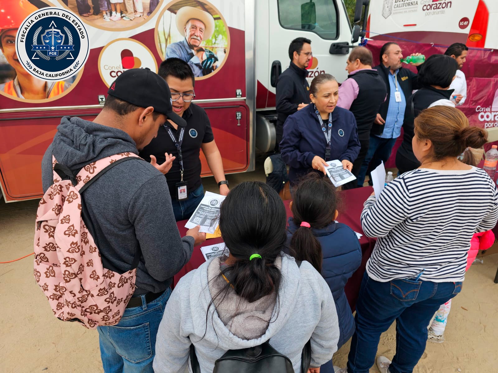 TIJUANA, B.C. Durante el desarrollo de la "Jornada con el Corazón por Delante", que encabeza la Gobernadora del Estado, Marina Del Pilar Ávila Olmeda, personal de la Fiscalía General del Estado brindó atención, información y orientación a la población en temas de interés relacionados con la procuración de justicia.