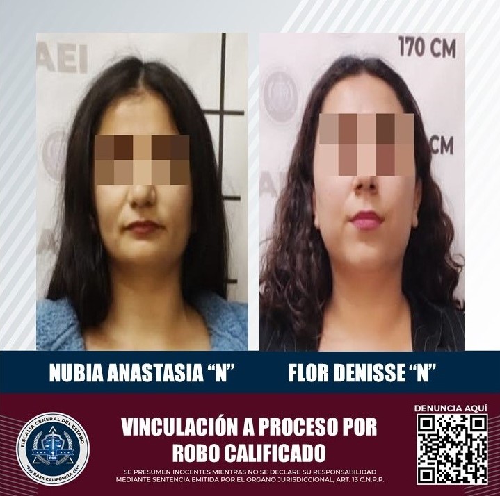 ENSENADA, B.C. La Fiscalía Regional de Ensenada, a través del Ministerio Público, presentó cargos por el delito de robo contra dos mujeres que fueron detenidas en un establecimiento comercial por apoderarse de mercancía con valor de 7 mil 888 pesos.
