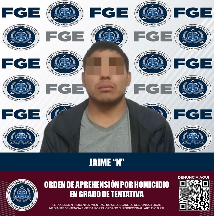 SAN QUINTÍN, B.C. Agentes de la Fiscalía General del Estado (FGE), en San Quintín, cumplimentaron orden de aprehensión en contra de Jaime “N”, alias “El Búho”, por el delito de homicidio calificado cometido con premeditación y ventaja en grado de tentativa.
