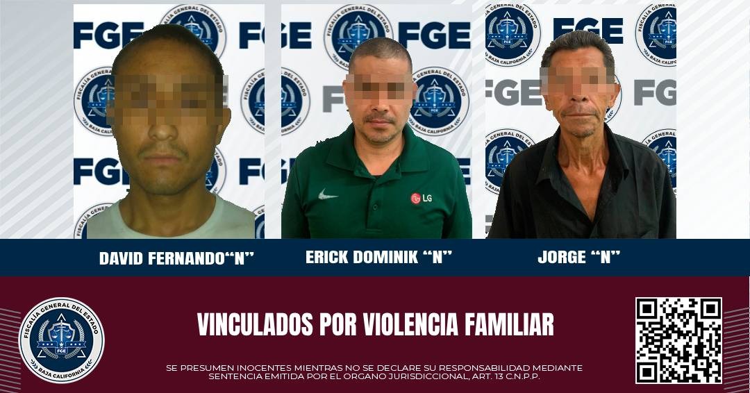 MEXICALI, B.C. 13 DE JUNIO DE 2023.- La Fiscalía Regional de Mexicali, a través de la Unidad de Investigación con Detenidos Oriente, logró mediante la correcta integración de la carpeta de investigación, la vinculación a proceso de tres hombres acusados de agredir a sus familiares.