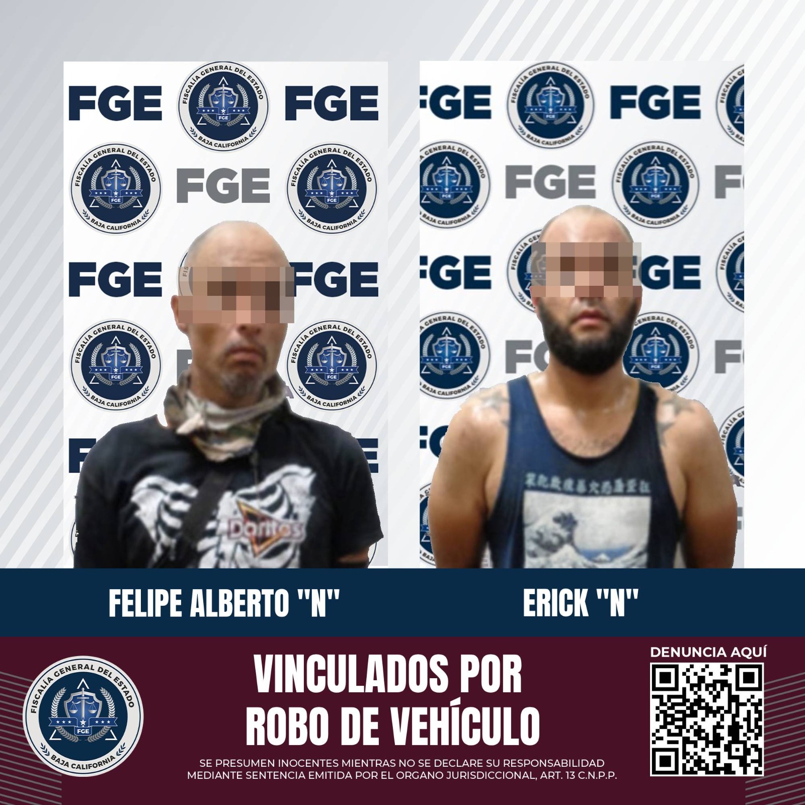 MEXICALI, B.C. La Fiscalía Regional de Mexicali a través de las Unidad de Investigación de Robo de Vehículos, obtuvo a través de los elementos de prueba presentados ante el Juez, prisión preventiva en contra de dos imputados por el delito de robo de vehículo con violencia.