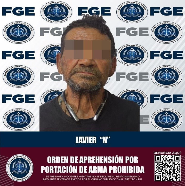 ENSENADA, B.C. Efectivos de la Agencia Estatal de Investigación, de la Fiscalía General del Estado (FGE), capturaron a un hombre que contaba con una orden de aprehensión vigente por el delito de portación de arma prohibida.