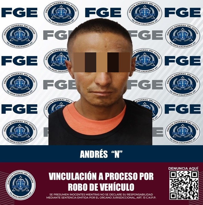 ENSENADA, B.C. Por el delito de robo de vehículo, la Fiscalía Regional de Ensenada obtuvo la vinculación a proceso de Andrés “N”, quien permanecerá en prisión en tanto se desarrolla la investigación del caso.