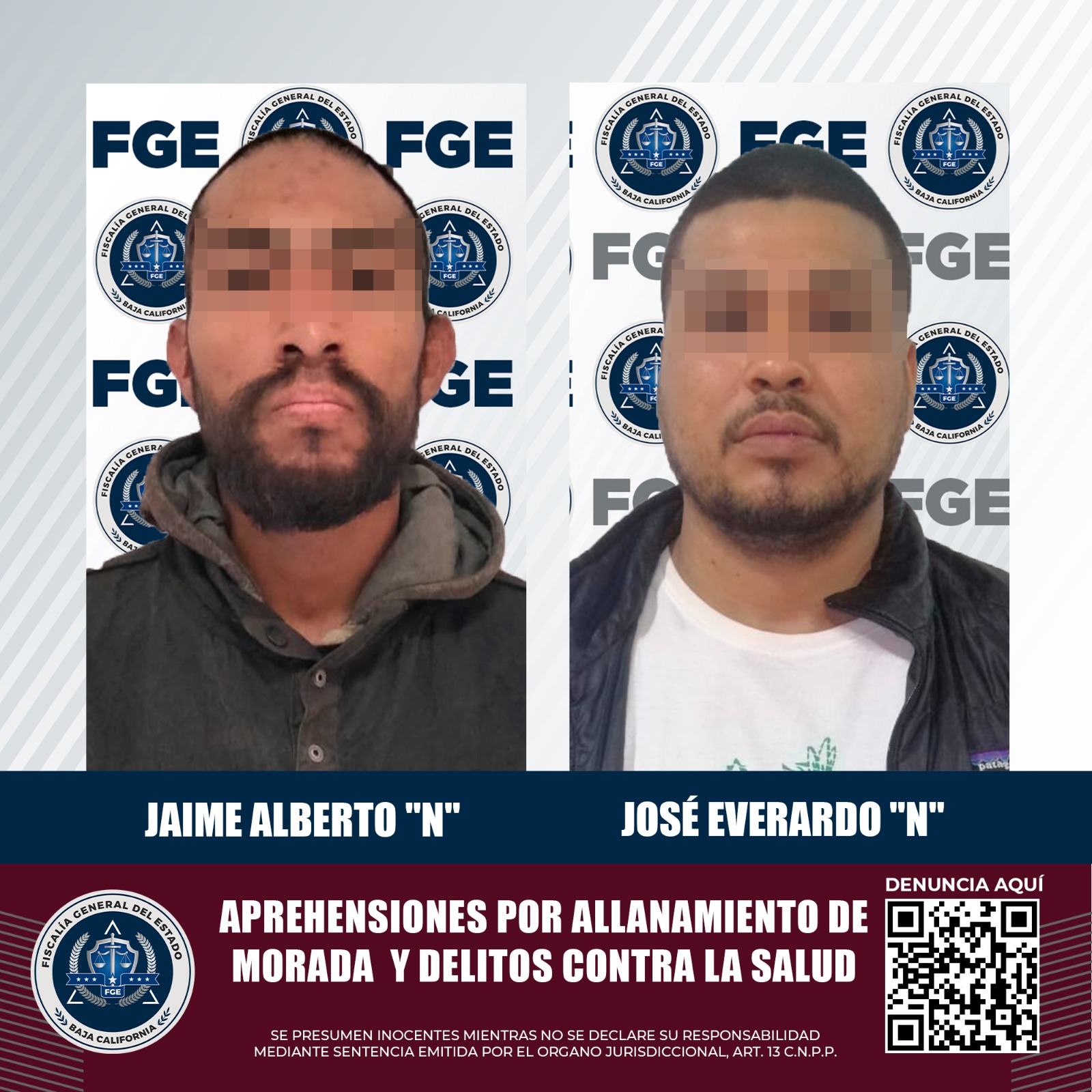 PLAYAS DE ROSARITO, B.C. El Grupo Especializado en Aprehensiones de la Fiscalía General del Estado cumplimentó dos mandamientos judiciales por ilícitos ocurridos en Playas de Rosarito; en uno de los casos por allanamiento de morada y el otro por delitos contra la salud.