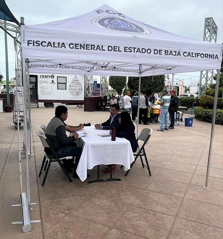 PLAYAS DE ROSARITO, B.C. Con el propósito de brindar atención y orientación a la población en temas referentes a la procuración de justicia, la Fiscalía General del Estado, instaló en la explanada del Centro de Gobierno del Estado en Playas de Rosarito, el módulo “Fiscalía en tu Comunidad”.