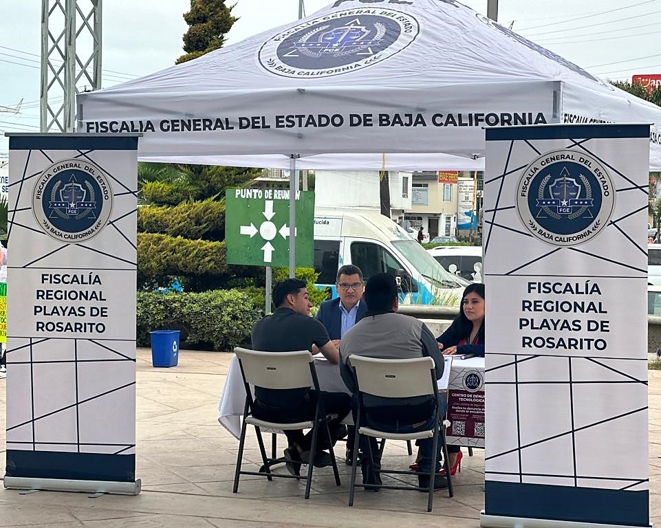 El Fiscal Regional de Playas de Rosarito, Alejandro Peinado y personal adscrito a esta Fiscalía, asesoraron a la ciudadanía sobre diversos trámites que se realizan ante esta institución, asimismo, facilitaron información sobre las opciones para tramitar constancias de extravío, haciendo uso de las herramientas tecnológicas.