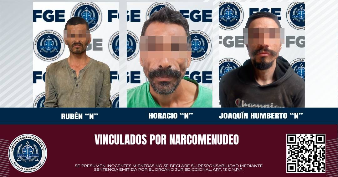 MEXICALI, B.C. Por su presunta participación en la venta y distribución de drogas, tres acusados por delitos contra la salud, fueron vinculados a proceso con base en los elementos probatorios presentados por la Fiscalía General del Estado (FGE).