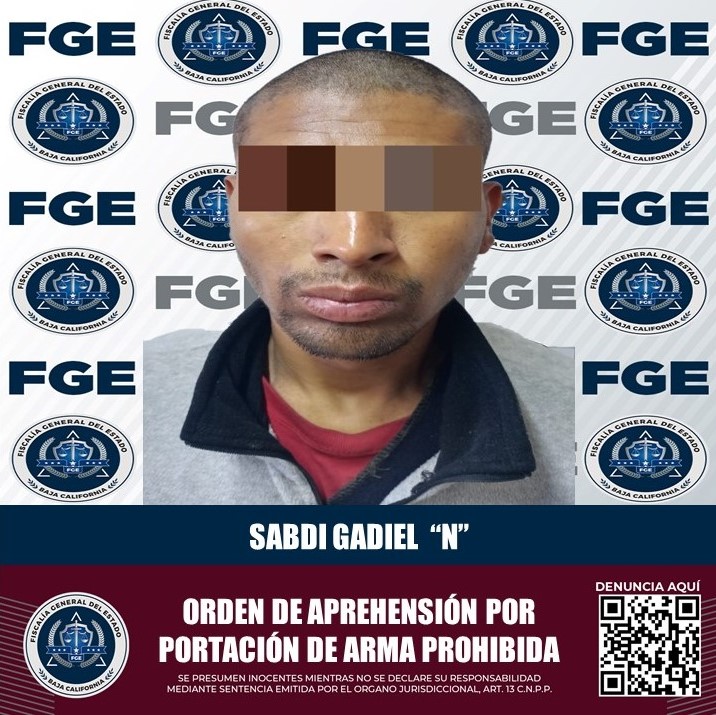 ENSENADA, B.C. Un sujeto sobre el que pesaba una orden de aprehensión por el delito de portación de arma prohibida, fue asegurado por efectivos de la Fiscalía General del Estado (FGE), en Ensenada.