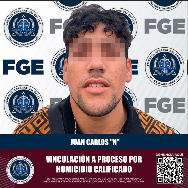 TIJUANA, B.C. La Fiscalía General del Estado (FGE), logró la vinculación a proceso del imputado Juan Carlos "N", por el delito de homicidio calificado, con la medida cautelar de prisión preventiva oficiosa.