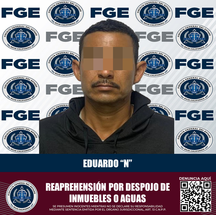 ENSENADA, B.C. La Fiscalía General del Estado (FGE), en Ensenada, puso a disposición de un Juez de Control a un hombre por el delito de despojo de inmuebles o aguas.