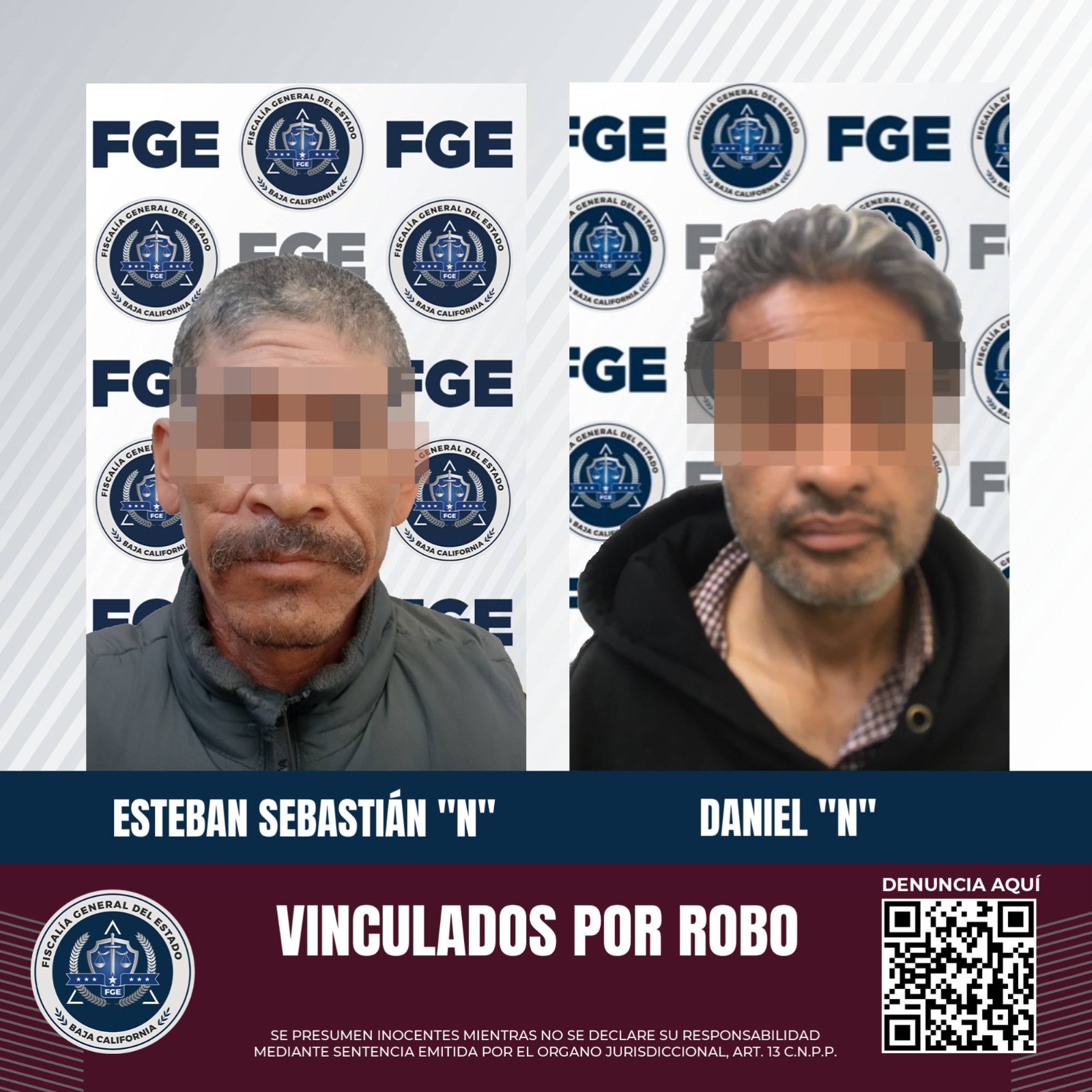 MEXICALI, B.C. La Fiscalía Regional de Mexicali, a través de la Unidad de Investigación con Detenidos Poniente, logró la vinculación a proceso, en audiencias por separado, de dos hombres relacionados en el delito de robo.