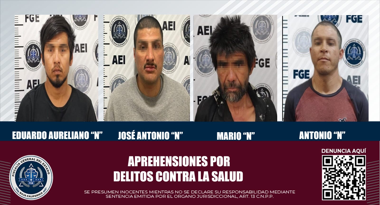 Cuatro sujetos quedan aprehendidos por delitos contra la salud: FGE