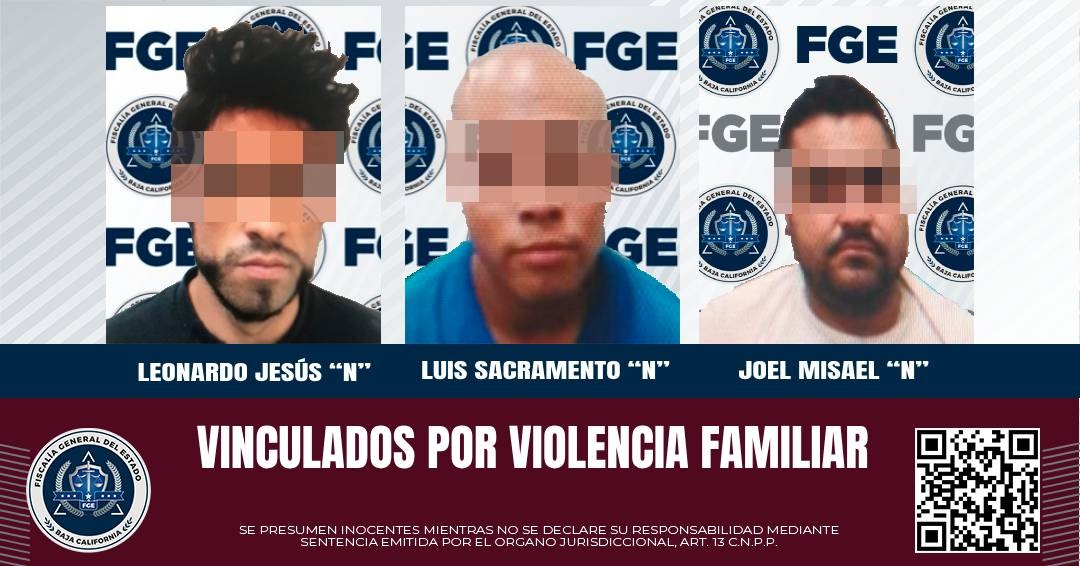 MEXICALI, B.C. Por su presunta participación en el delito de violencia familiar, tres hombres fueron vinculados a proceso, con base al trabajo realizado por la Fiscalía Regional de Mexicali, a través de la Unidad de Investigación con Detenidos Poniente.