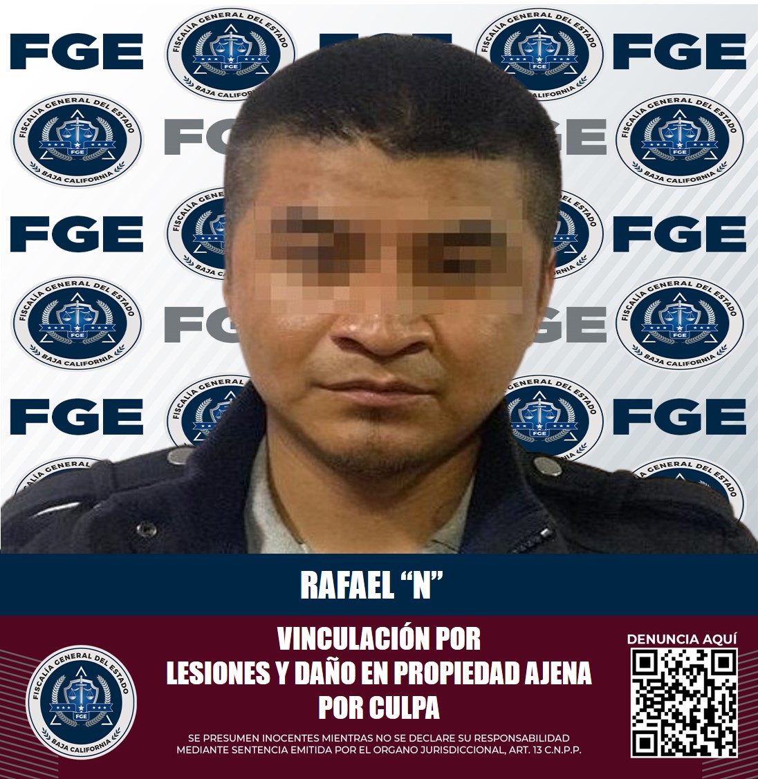 TIJUANA, B.C. A través de diversos datos de prueba aportados por el agente del Ministerio Público de la Fiscalía Regional de Tijuana, se obtuvo la vinculación a proceso contra Rafael “N”, señalado por ser probable responsable de los delitos de lesiones y daño en propiedad ajena por culpa.