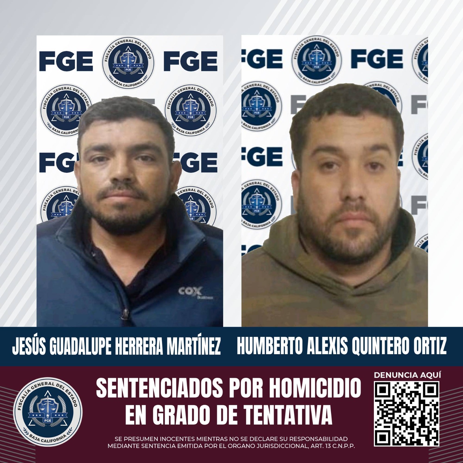 MEXICALI, B.C. La Fiscalía General del Estado (FGE), a través de la Fiscalía Especializada de Delitos Contra la Vida, logró mediante un procedimiento abreviado una sentencia de 15 años de prisión para dos hombres, por el delito de homicidio calificado por ventaja en grado de tentativa.