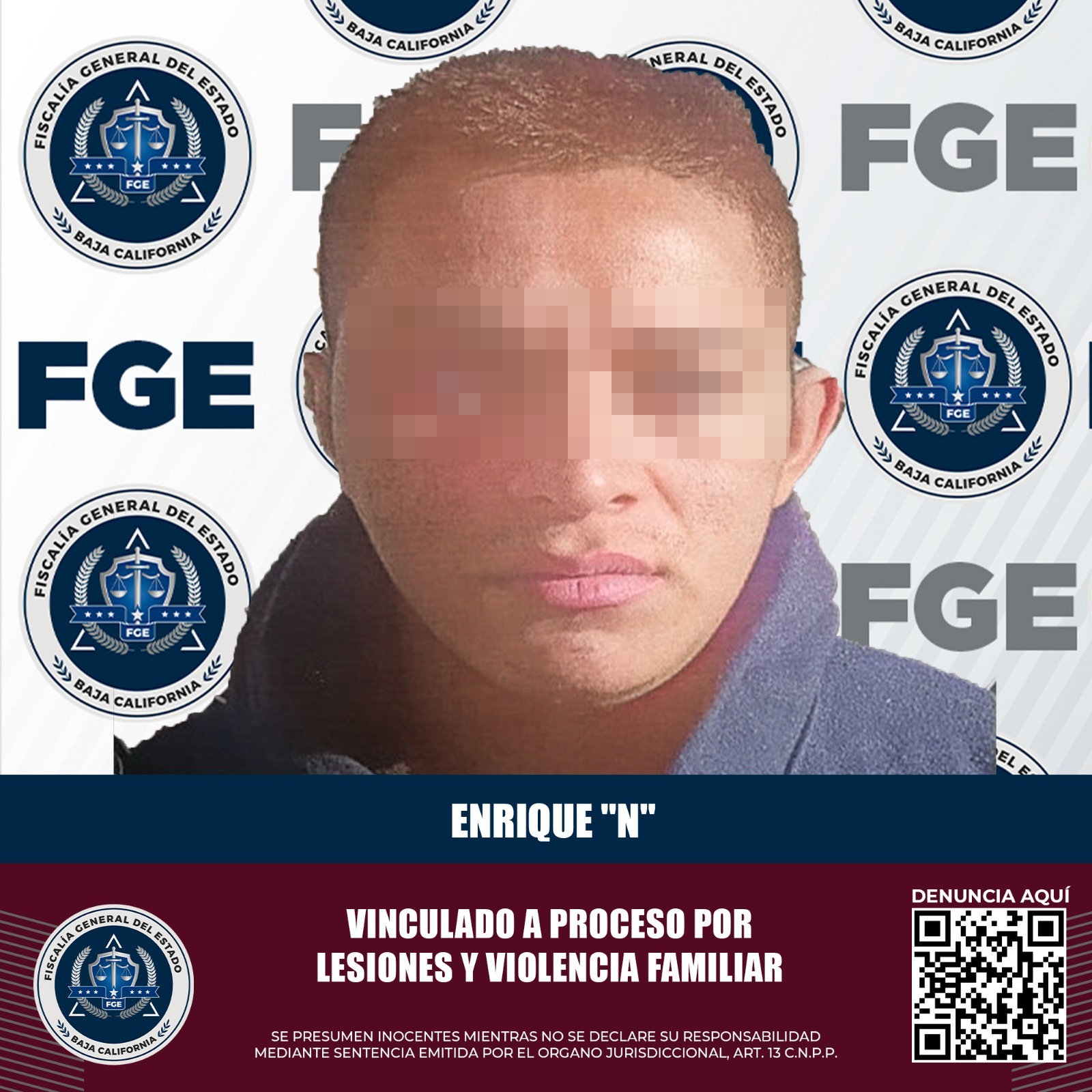 TIJUANA, B.C. La Fiscalía General del Estado informa que una persona ha sido vinculada a proceso penal por los delitos de violencia familiar y lesiones.