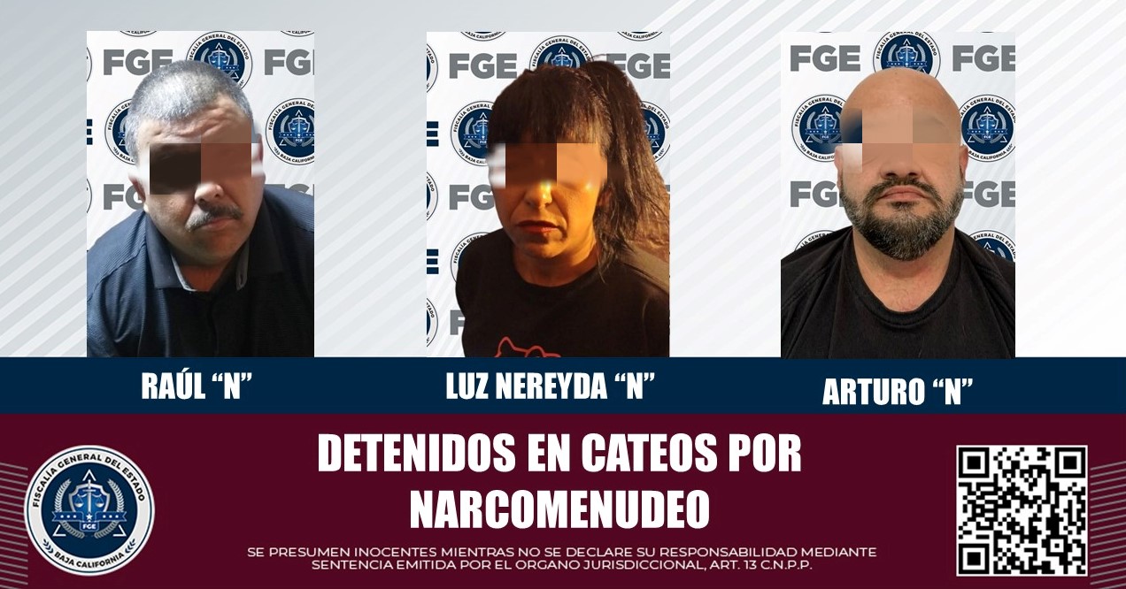 TIJUANA, B.C. En el marco de los operativos de cateo para combatir el delito de narcomenudeo, la Fiscalía General del Estado obtuvo mandamientos judiciales que permitieron la detención de tres personas, así como el decomiso de diversas cantidades de droga.