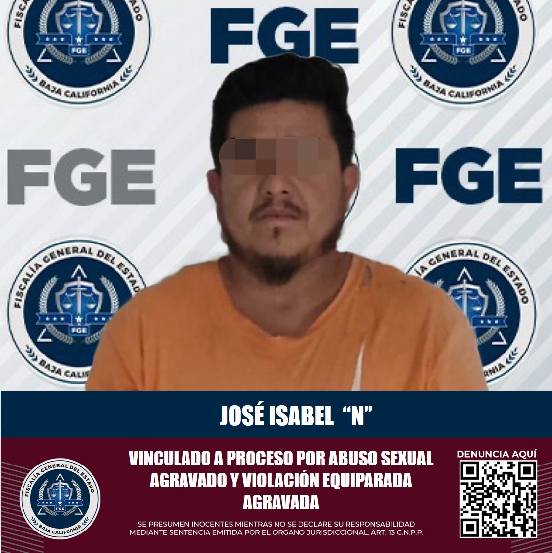 MEXICALI, B. C. La Fiscalía General del Estado, a través de la Fiscalía Especializada en Delitos Contra Mujeres por Razón de Género, logró la vinculación a proceso en contra de José Isabel “N”, por presuntamente cometer los delitos de abuso sexual agravado y violación equiparada agravada.