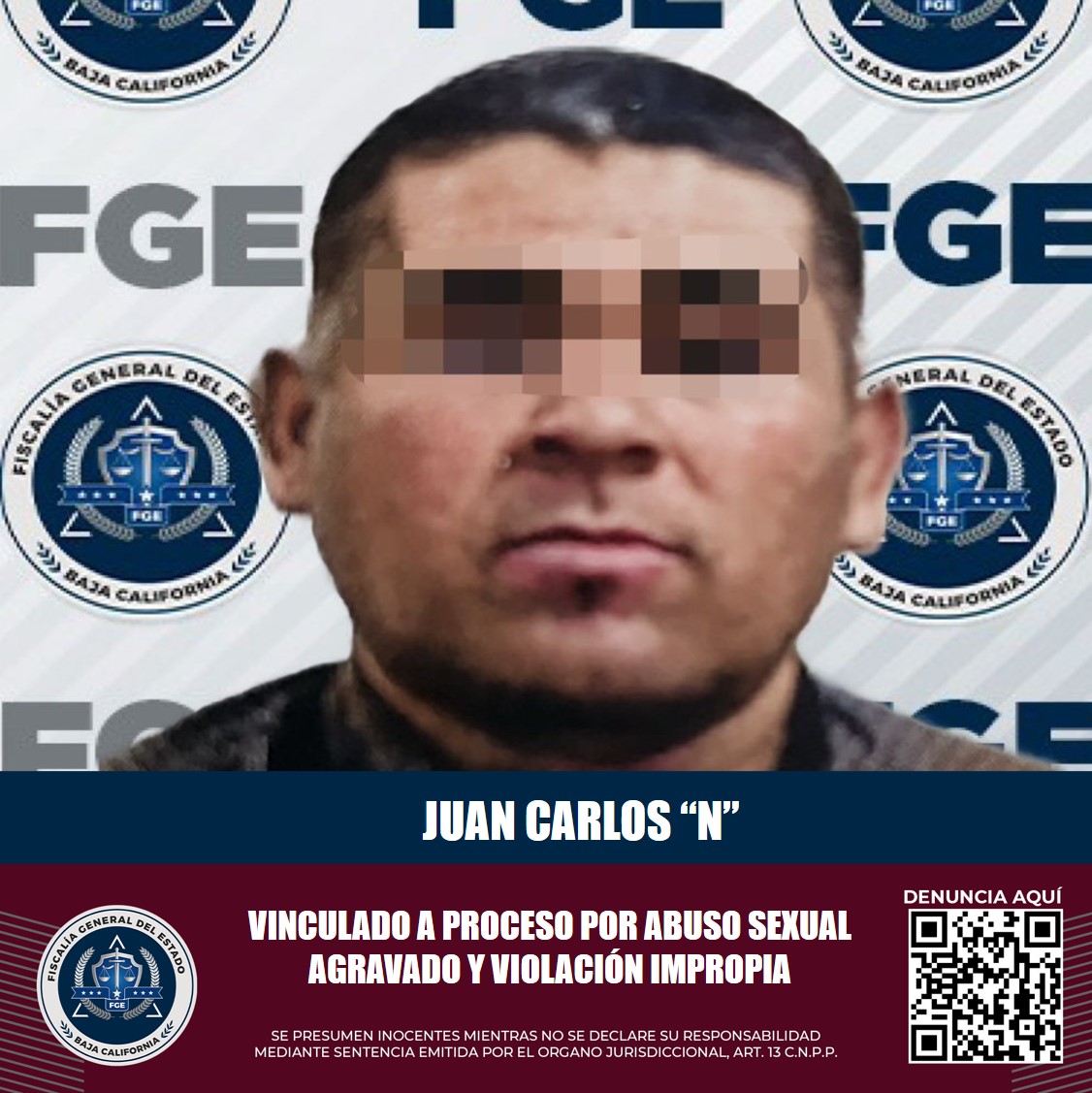 MEXICALI, B.C. La Fiscalía General del Estado, a través de la Fiscalía Especializada en Delitos Contra la Mujer por Razón de Género, logró la vinculación a proceso en contra de Juan Carlos “N”, por presuntamente cometer los delitos de abuso sexual agravado y violación impropia.