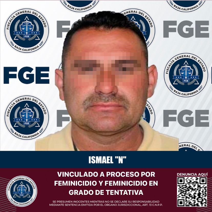 TIJUANA, B.C. Derivado de una minuciosa y efectiva investigación, bajo la conducción y mando del Ministerio Público, la Fiscalía General del Estado obtuvo la vinculación a proceso de Ismael "N", acusado de los delitos de feminicidio y feminicidio en grado de ejecución de tentativa, por un hecho ocurrido el pasado 17 de junio, donde presuntamente privó de la vida a su hija y lesionó a su esposa.