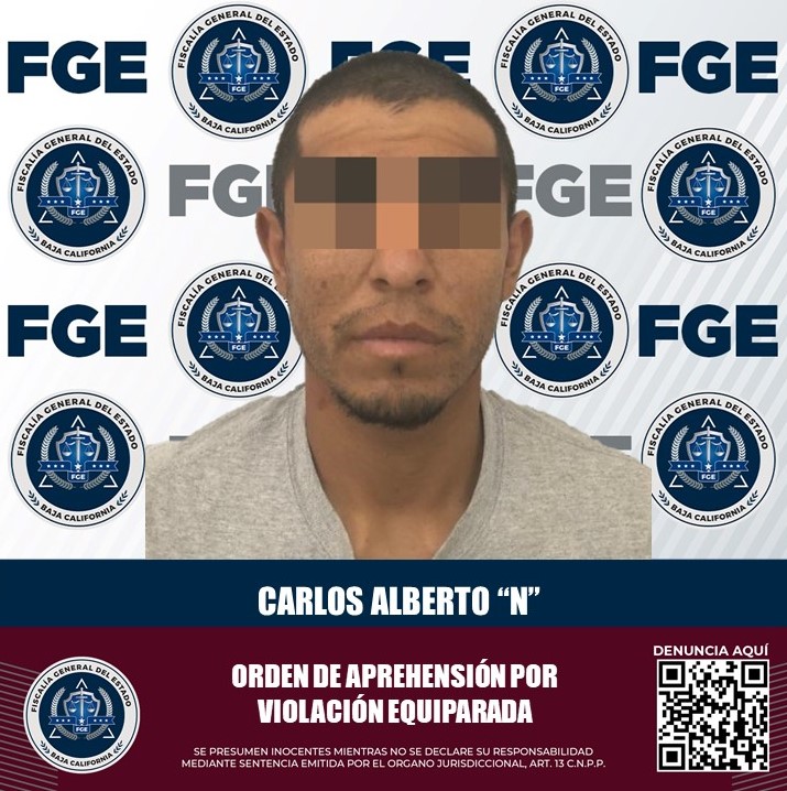 ENSENADA, B.C. Elementos de la Agencia Estatal de Investigación, de la Fiscalía General del Estado (FGE), cumplimentaron orden de aprehensión contra un hombre por el delito de violación equiparada.