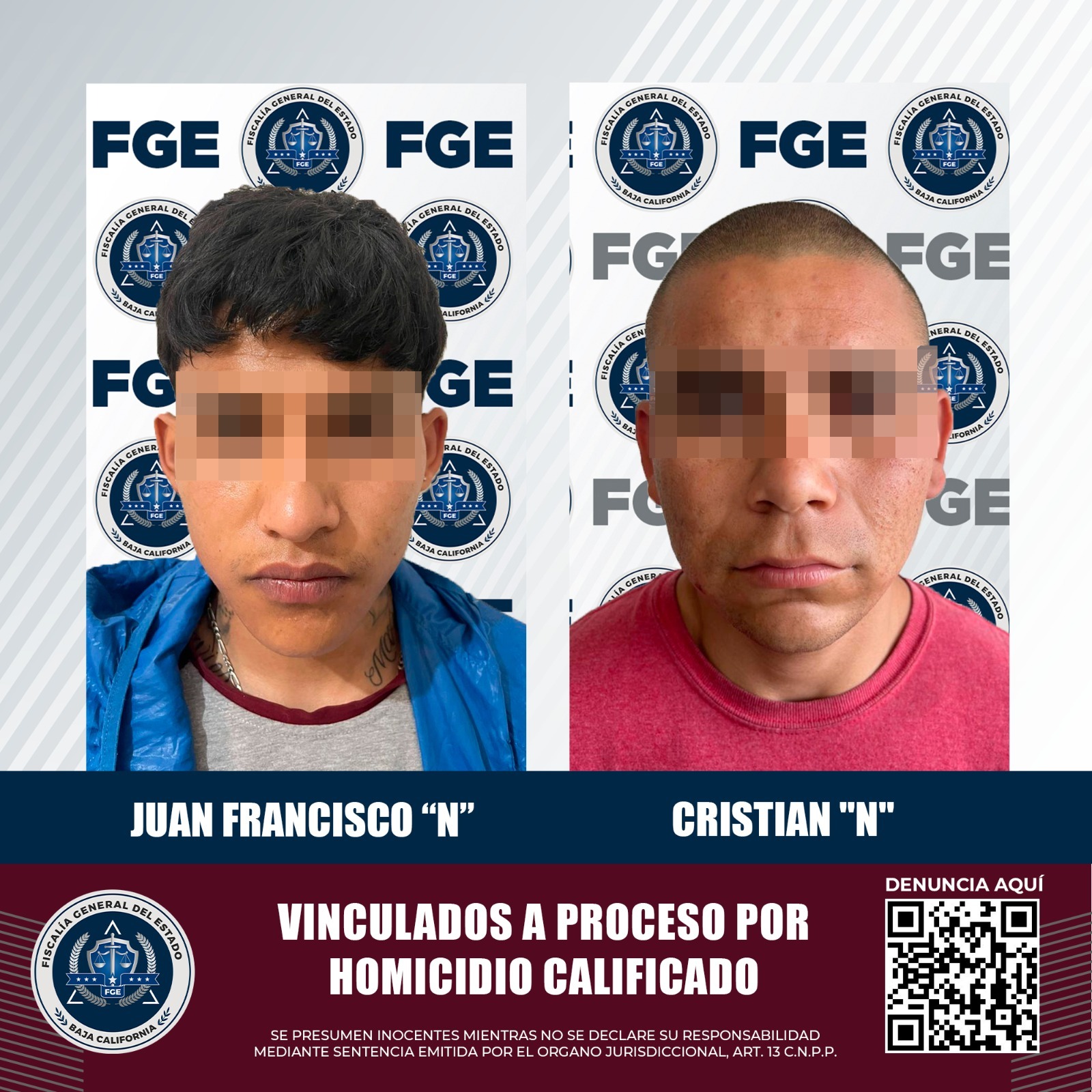 TIJUANA, B.C. En una audiencia de formulación de imputación, por detención en flagrancia delictiva, se ha determinado vincular a proceso a Cristian "N" y Juan Francisco "N" por el delito de homicidio calificado con ventaja.