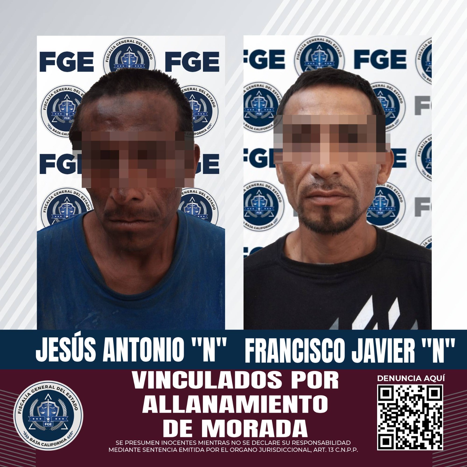 MEXICALI, B.C. 10 DE JULIO DE 2023.- La Fiscalía Regional de Mexicali, a través de la Unidad de Investigación con Detenidos Poniente, logró el inicio de un proceso penal en contra de dos hombres que fueron relacionados en el delito de allanamiento de morada.