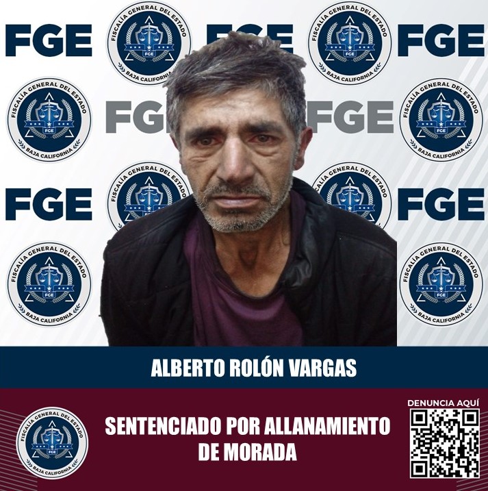ENSENADA, B.C. La Fiscalía Regional de Ensenada, a través de la labor de la Unidad de Investigación de Delitos Contra la Vida y la Integridad, obtuvo sentencia condenatoria de 4 meses de prisión en contra de Alberto Rolón Vargas, por el delito de allanamiento de morada.