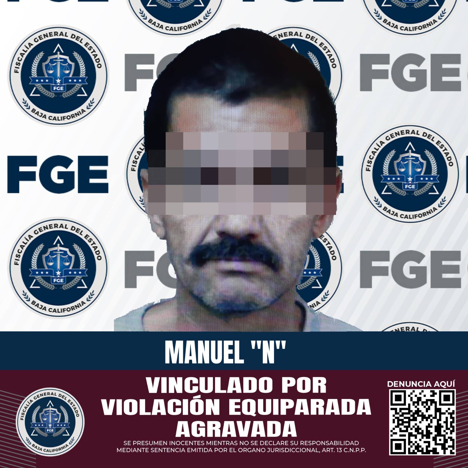 MEXICALI, B.C. 13 DE JULIO DE 2023.- Con base en las pruebas presentadas por la Fiscalía General del Estado (FGE), a través de la Fiscalía Especializada en Delitos Contra Mujeres Por Razón de Género, se logró la vinculación a proceso de un imputado por el delito de violación equiparada agravada.