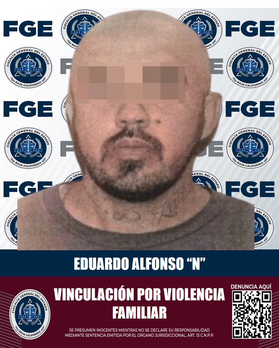 TIJUANA, B.C. Como resultado de acciones de investigación y datos de prueba recabados por la Fiscalía General del Estado, se logró vincular a proceso a Eduardo Alfonso “N”, quien es probable responsable del delito de violencia familiar (psicológica).