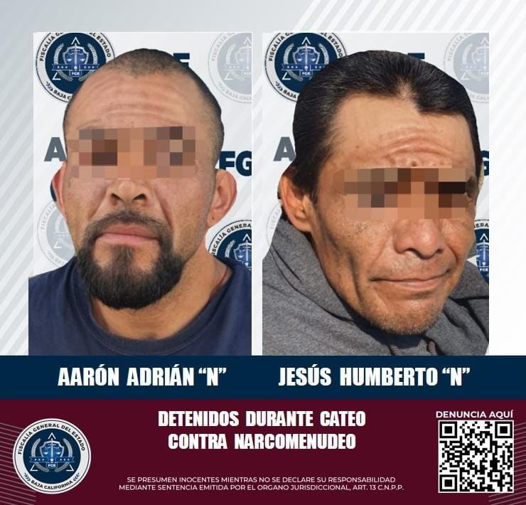 Durante la diligencia, el agente del Ministerio Público, en coordinación con elementos de la Agencia Estatal de Investigación, detuvieron a Jesús Humberto “N” y Aarón Adrián “N”, de 44 y 32 años de edad, respectivamente.