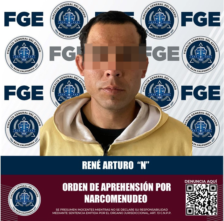 ENSENADA, B.C. Efectivos de la Fiscalía General del Estado, en Ensenada, capturaron a un sujeto que contaba con una orden de aprehensión vigente por delitos contra la salud en modalidad de narcomenudeo.