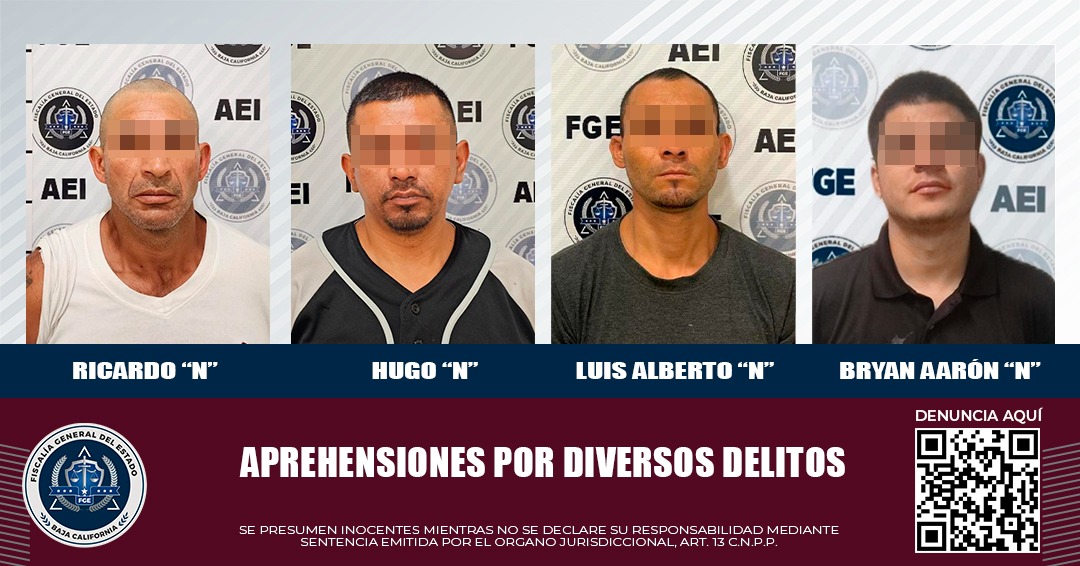 TIJUANA, B.C. La Fiscalía General del Estado, obtuvo a través de un Juez de Control mandamientos judiciales por diversos delitos, los cuales fueron cumplimentados tras labor desarrollada por elementos de la Agencia Estatal de Investigación (AEI).