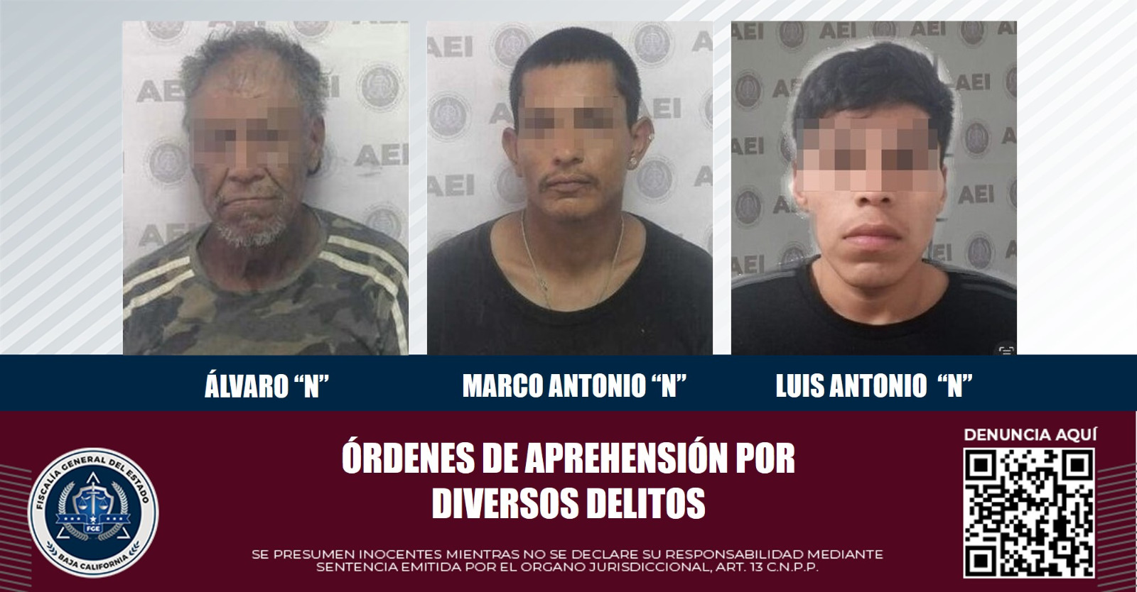TECATE, B.C. 22 DE JULIO DE 2023.- La Fiscalía General del Estado, a través de los elementos de la Agencia Estatal de Investigación, cumplimentó tres mandamientos judiciales por los delitos de abuso sexual a menor de catorce años agravado, robo calificado y daño en propiedad ajena.