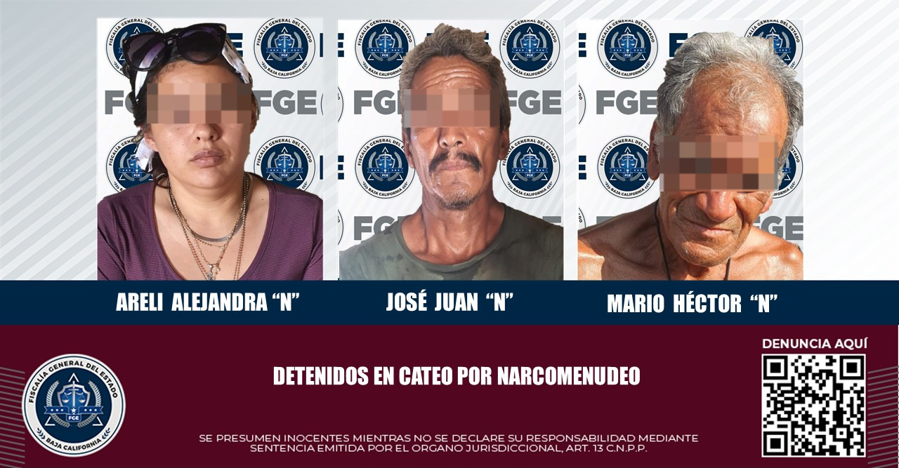 ENSENADA, B.C. El aseguramiento de tres personas, droga y un predio, es el resultado de la orden de cateo que la Fiscalía General del Estado ejecutó en un domicilio de la colonia Escritores.