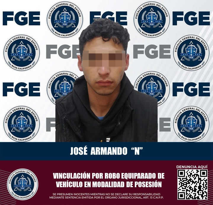 ENSENADA, B.C. En prisión quedó un sujeto, luego de que la Fiscalía Regional de Ensenada presentó cargos penales en su contra, por el delito de robo equiparado de vehículo de motor en modalidad de posesión.