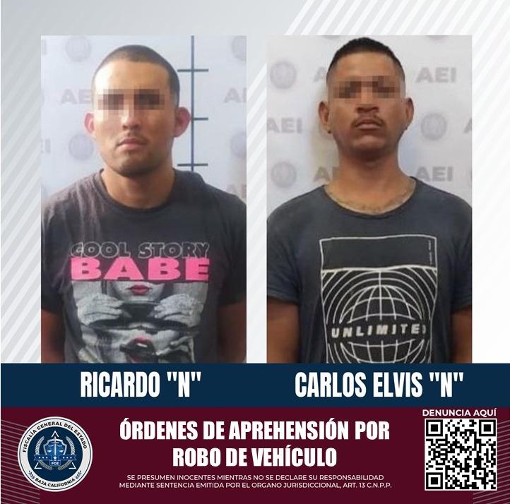 MEXICALI, B.C. Como parte de la estrategia integral contra el delito de robo de vehículo, elementos de la Fiscalía Regional de Mexicali detuvieron a dos sujetos que contaban con mandatos judiciales en su contra por dicho ilícito.