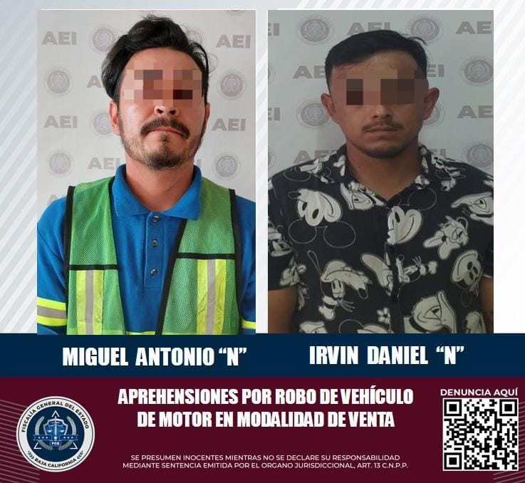 ENSENADA, B.C. En distintas diligencias, agentes de la Fiscalía General del Estado (FGE), cumplimentaron dos órdenes de aprehensión por el delito de robo equiparado de vehículo de motor, en modalidad de venta.